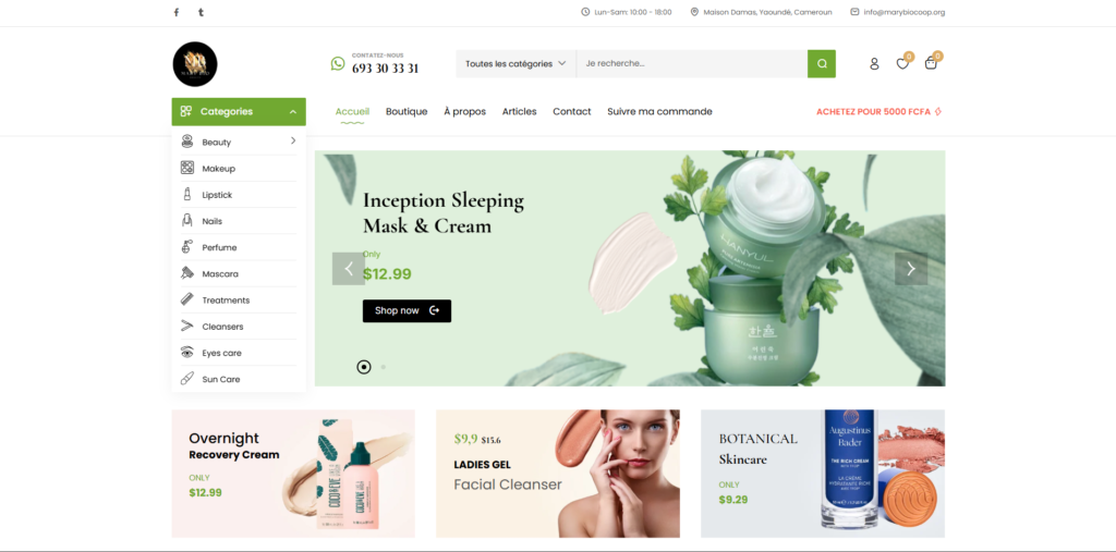 Created a complete online shopping experience for Mary Bio Coop’s range of natural products. The site includes detailed product pages with ingredient information, secure checkout process, and mobile-optimized browsing. Successfully launched as the brand’s primary sales channel, enabling customers to purchase health and beauty products online with confidence.