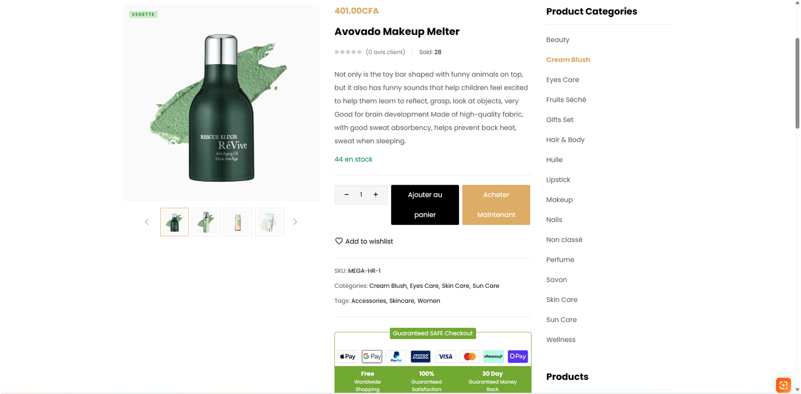 Full-featured e-commerce platform for natural cosmetic and health products.