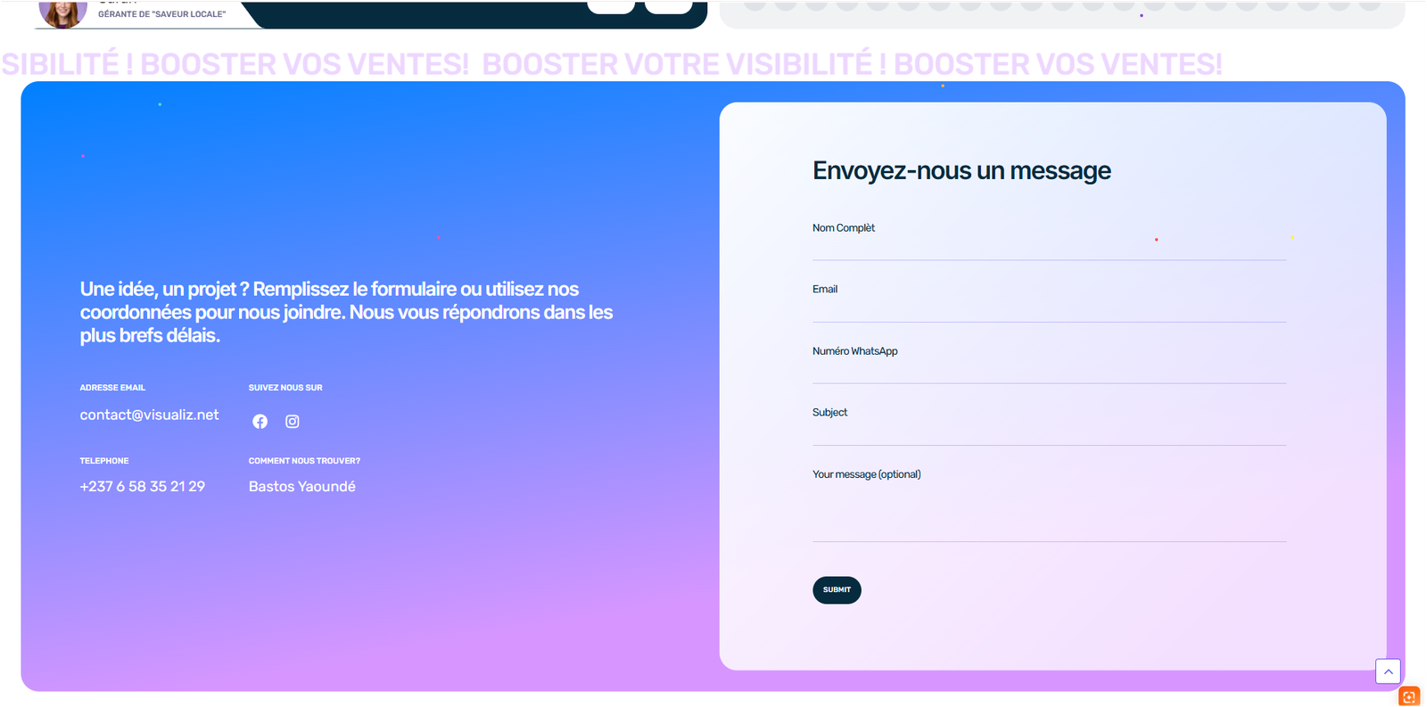 Designed and developed a visually engaging platform that demonstrates Visualiz Advertising’s expertise in social media marketing. The site highlights successful campaigns across Instagram, Facebook, and TikTok, with clear calls-to-action for potential clients. Built with performance optimization to ensure fast loading times for portfolio imagery and video content.